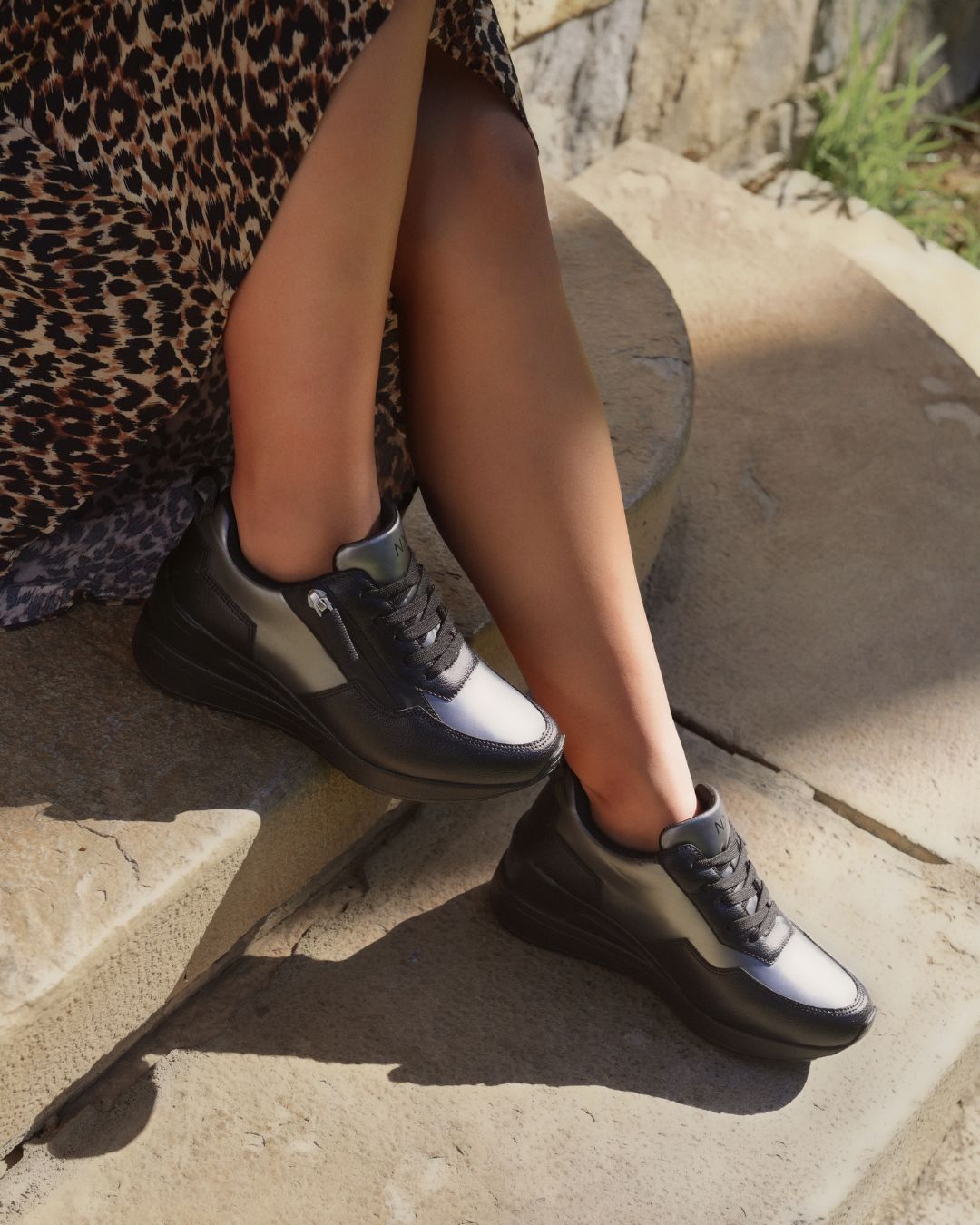 Ref. 597K404PL La zapatilla negra con plataforma interna y detalle en plomo de Nyrex redefine el ...